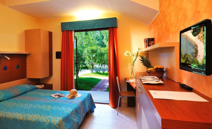 CAMERE: 350, poste su 2 o 3 piani, si dividono in: Classic: aria condizionata con regolazione individuale, TV, mini frigo, cassaforte, bagno. Disponibili Classic Garden o Classic al 1° o 2° piano con balconcino. Anche comunicanti e camere per diversamene abili. Inoltre Dog Room, Classic con giardino dotato di cuccia e scodella. Premium: nella zona vicina alla hall e ai servizi principali. Dispongono anche di bollitore con the e tisane, macchina caffè espresso, connessione Wi-Fi, TV 32 pollici, noleggio di un telo mare a persona (dai 3 anni) con un cambio infrasettimanale (ulteriori lavaggi sono a pagamento). Disponibili Premium Garden o Premium al 1° o 2° piano con balconcino. Comfort: nella zona vicina alla hall e ai servizi principali. Dispongono anche di bollitore con the e tisane, macchina caffè espresso, connessione Wi-Fi, TV 43 pollici con Sky, open frigo bar (acqua, 2 bibite e birra), noleggio di un telo mare a persona (dai 3 anni) con cambio giornaliero e ombrellone spiaggia in zona centrale (dalla 2ªalla 4ª fila). Disponibili Comfort Garden o Comfort al 1° piano con Balconcino.